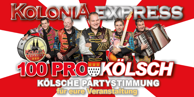 KOLONIA EXPRESS spielt viele alte und neue Kölsche Hits, von BläckFööss, über Höhner, bis Brings und zurück. Alles 100% live, 100% Kölsch und mit viel Spaß an der Freud.